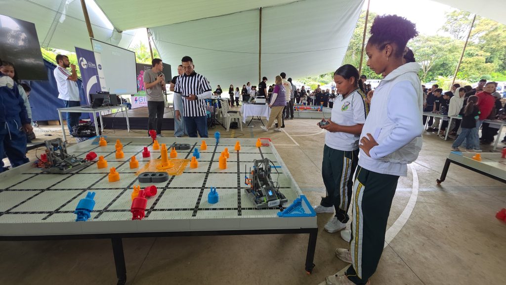El equipo “Las Chicas del Chip” conformado por las estudiantes Daniany Alves, María Fernanda Sotelo, Nicole Perea, María Victoria Gutiérrez, Paula Ruiz, Mariángel Perea y Jhennifer Brochero, pusieron a prueba sus habilidades y estrategias para la construcción de su prototipo y para obtener una alta puntuación en el torneo, dejando en alto el nombre de la Institución Educativa Santo Domingo.